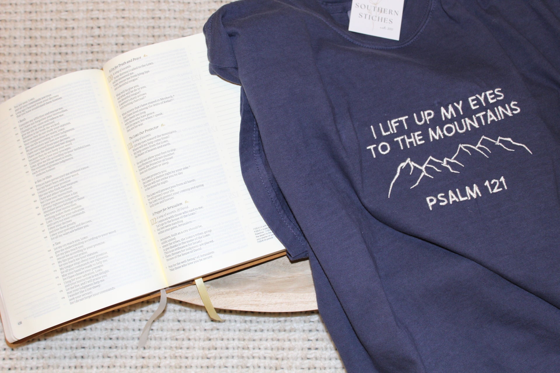 Carry the comforting words of Psalm 121 with you wherever you go with this embroidered t-shirt. Whether you're hiking, relaxing, or simply seeking encouragement, this shirt will keep you grounded in His word.