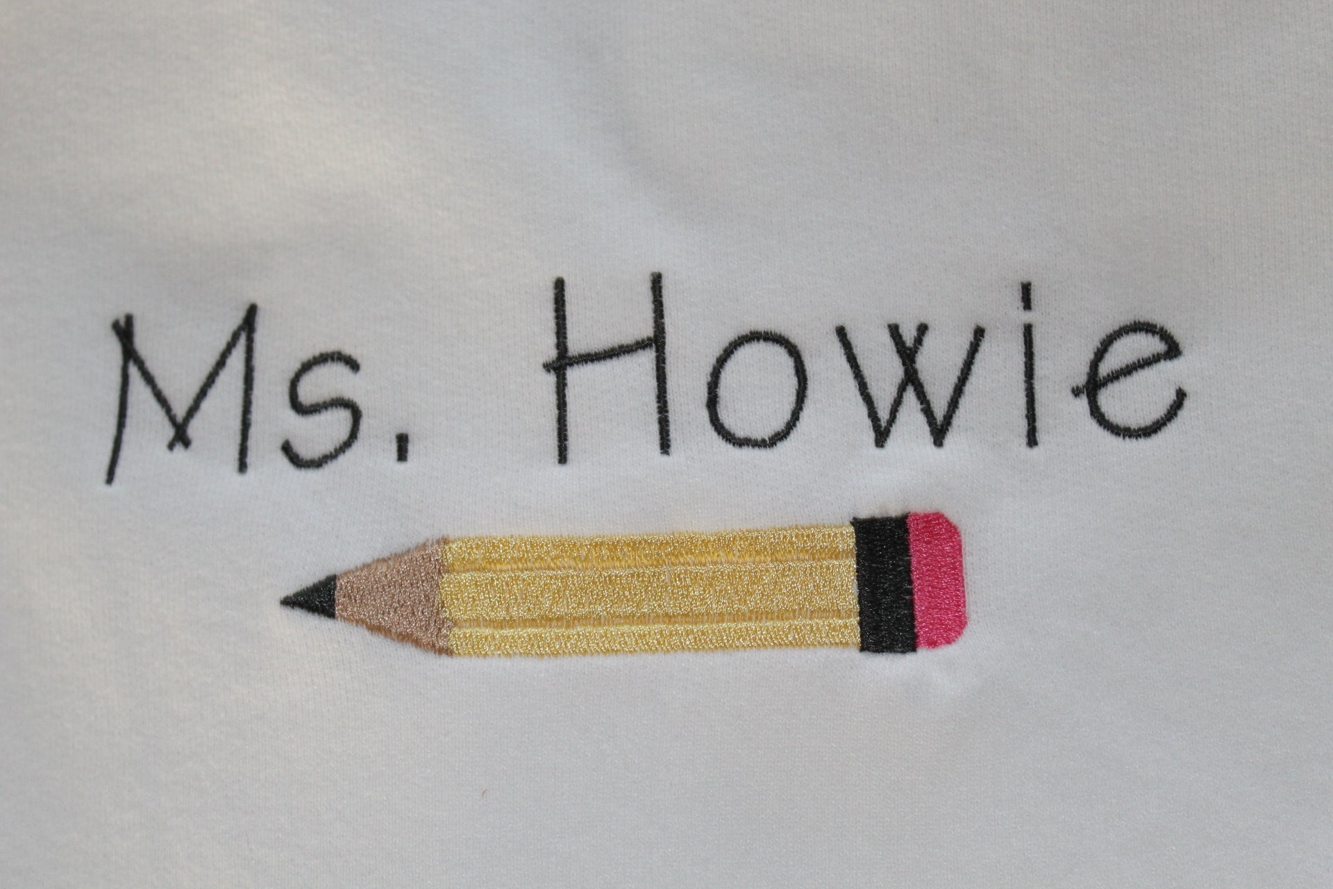 Show off your passion for education with this charming, embroidered shirt! Featuring a classic pencil design and a CUSTOM name stitched in elegant lettering, this shirt is perfect for the classroom, casual Fridays, or teacher appreciation events.